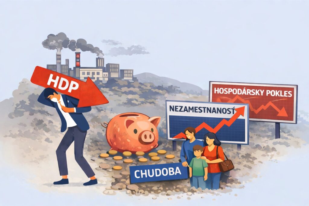 Hospodárstvo stagnuje. V minulých rokoch sa rast slovenskej ekonomiky výrazne spomalil. Podľa Ministerstva financií dosiahol v minulom roku 0,8 % a hranicu dvoch percent presiahne až v roku 2029 (údaje sú zo septembra 2025). Podobne pesimistická je aj prognóza Európskej komisie z novembra 2025. Mierne optimistickejšia je NBS, ktorá v decembri 2025 prognózovala presiahnutie hranice dvoch percent už v roku 2028. Sú to však veľmi nízke hodnoty v porovnaní s potrebami konvergujúcej ekonomiky.