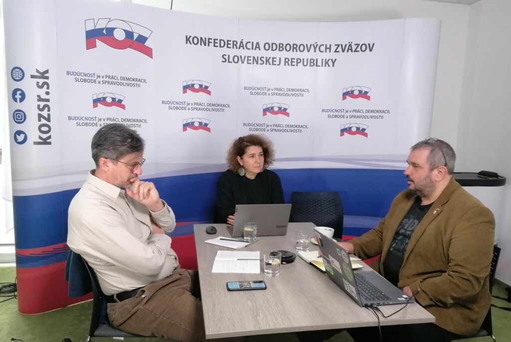 V utorok sa uskutočnil webinár Konfederácie odborových zväzov SR s názvom Zamerané na prácu: Trh práce v číslach. Ekonóm Anton Marcinčin a ekonomický analytik Ján Košč na ňom predstavili kľúčové zistenia z posledných analytických publikácií KOZ SR, ktoré sa venujú vývoju pracovných podmienok, miezd a sociálno-ekonomickej situácie na Slovensku. Webinár ponúkol analyticky podložený pohľad na postavenie pracujúcich v kontexte aktuálnych ekonomických a politických zmien.