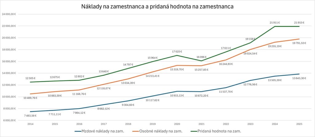 Diskusia o nákladoch práce je legitímna, no musí byť vedená v súvislostiach. Ak sa mzdy stanú univerzálnym vysvetlením problémov, prestávame hľadať skutočné príčiny. V prípade Milk-Agro nejde o príbeh „prehriateho rastu miezd“, ale o firmu, ktorá naráža na limity svojho doterajšieho modelu v prostredí rastúcich nákladov a stagnujúcich výnosov. Dáta neukazujú „mzdovú pascu“, ale skôr pascu nízkych marží. Pridaná hodnota na zamestnanca dlhodobo rastie, počet zamestnancov klesá a mzdy sa vyvíjajú v súlade s ekonomikou.